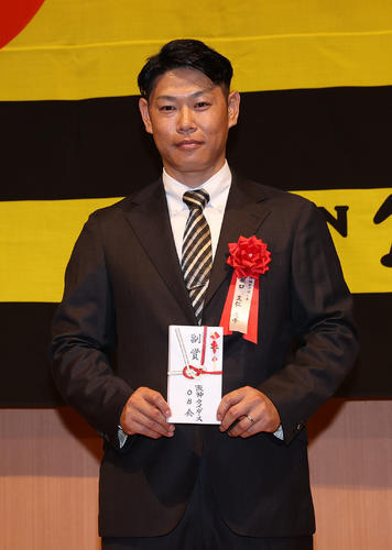 今季限りで現役引退した阪神原口文仁捕手(33)がOB会の懇親会に出席し、功労賞を受賞した。