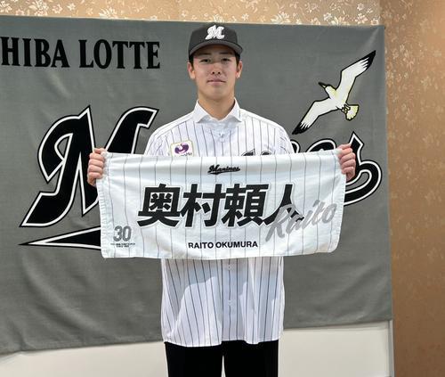 ロッテのドラフト3位、横浜・奥村頼人投手(18)が24日、横浜市内のホテルで球団と交渉し、契約金5000万円、年俸600万円で仮契約を結んだ。