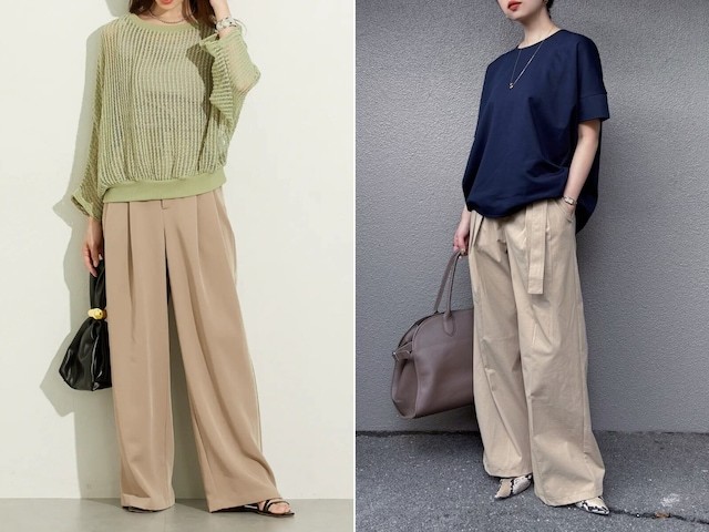 ネイビーとベージュの組み合わせは、上品さと柔らかさを両立した王道のカラーコーディネートです。リッチな色であるベージュの分量を多めにすると、柔らかくナチュラルな印象になり、レイジーラグジュアリーな雰囲気を楽しめるでしょう。