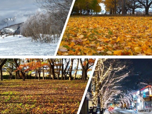 11月末から12月初め、天気は目まぐるしく変わり、気温は平年並みか高い所が多い見込みです。
