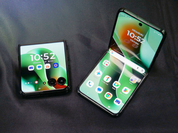 なお、弟分に位置付けられるmotorola razr 60は、プロセッサがMediaTek Dimensity 7400X、サブディスプレイが約3.6型、メインディスプレイが約6.9型、メインメモリが12GB、望遠カメラ非搭載、バッテリーが4500mAhで急速充電が最大30Wなどの違いがある。motorola razr 60 ultraは、より大きなディスプレイ、望遠レンズ付きカメラ、より高いパフォーマンスや高速充電が特徴といえる。