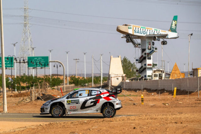 エルフィン・エバンス(トヨタGRヤリス・ラリー1) 2025年WRC第14戦ラリー・サウジアラビア 11月28日(金)、中東サウジアラビアで2025WRC世界ラリー選手権の第14戦『ラリー・サウジアラビア』のデイ3が行われ、スペシャルステージ(SS)9〜14を終えてヒョンデ・シェル・モービスWRTのアドリアン・フルモー(ヒョンデi20 Nラリー1)が総合首位を守った。日本の勝田貴元(トヨタGRヤリス・ラリー1)は総合4番手につけている。