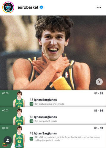 リトアニア、残り9秒から逆転の流れ(バスケ欧州選手権の公式インスタグラムから)