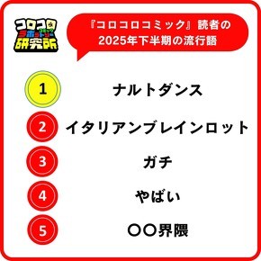 ぷっちぐみ読者の流行語ランキングは、1位がイタリアンブレインロット、2位がカードゲーム・アニメの「ひみつのアイプリ」、3位が「まじ?」、4位がネットミームの「エッホエッホ」、5位が中国発のキャラクター「ラブブ」だった。コロコロコミック読者の流行語ランキングは、1位が中国SNS発の踊り「ナルトダンス」、2位がイタリアンブレインロット、3位が「ガチ」、4位が「やばい」、5位が「○○界隈」だった。