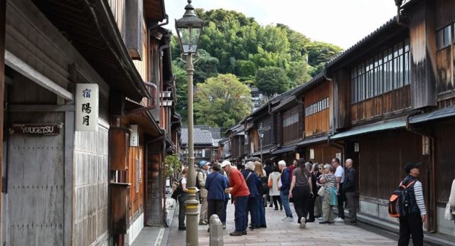 ひがし茶屋街へ向かうと、すでに観光客でいっぱい。写真を撮るにとどめるかしわいさつきさんでした。