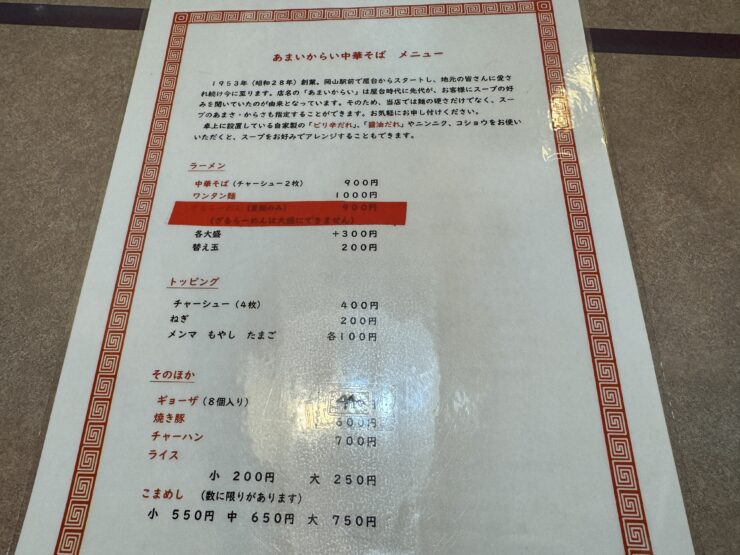・1953年(昭和28年)創業の老舗岡山ラーメン店、それが「あまいからい」