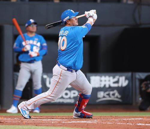 韓国打線が止まらない。0−2の3回無死、日本4番手の元阪神岩田稔氏(42)から、元中日の3番李鍾範氏が中前打で出塁すると、オリックスやソフトバンクで活躍した4番李大浩氏が右翼越えの適時二塁打を放った。ワンバウンドでフェンスに直撃する当たりを披露し、パワーは健在だった。さらに、元ロッテの5番金泰均氏も左中間へ適時二塁打を打った。NPB経験のある韓国選手達が、現役時代さながらの強烈な打球を見せ、日本内野陣からは「よう打つな。振れてる」と声が飛んだ。