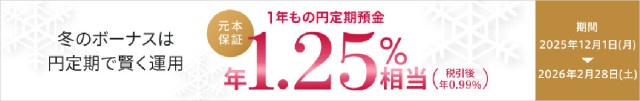 ËÜ¥¥ã¥ó¥Ú¡¼¥ó¤Ï¡¢2025ǯ12·î1Æü¤«¤é2026ǯ2·î28Æü¤Þ¤Ç¼Â»Ü¤µ¤ì¤ë¡£1ǯ¤â¤Î±ßÄê´üͶâ¤ËÂФ·¡¢Ä̾ï¶âÍø ǯ0.40%(Àǰú¸å ǯ0.31%)¤Ë²Ã¤¨¤Æ¡ÚÆÃŵ¡¡Ûǯ0.65%¤ò¾å¾è¤»¤·¡¢ÆÃÊ̶âÍø ǯ1.05%(Àǰú¸å ǯ0.83%)¤òÄ󶡤¹¤ë»ÅÁȤߤÀ¡£