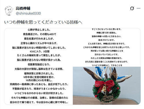 伸輔本人がまたSNSを更新できる日まで、代わりに家族が更新することになります。