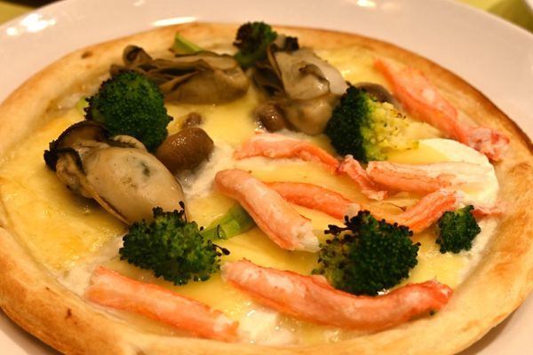 「松葉がに御膳」や「牡蠣のお好み焼き」などの特別メニュー2階のレストラン「ビストロカフェももてなし家」の特別メニュー(14日まで)は、岡山県産かきの入ったお好み焼き(1600円)や、クロダイのチャウダースープ(1100円)、鳥取からは「松葉がに御膳」(1万円、要予約)など。目玉は、日本海でとれた甘みが濃厚なベニズワイガニと、瀬戸内海のプリプリしたカキを乗せたピザだ。鳥取産ナガイモ「ねばりっこ」やシメジの香りも重なり、うまみたっぷりに仕上がっている。価格はいずれも税込み。
