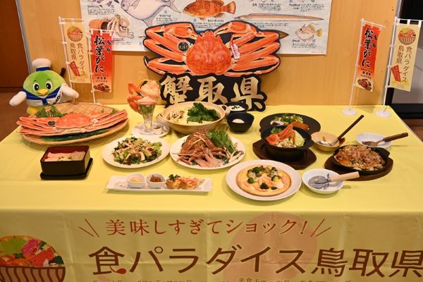 鳥取県と岡山県の冬の味覚を味わってもらおうと、両県が特産の水産物を提供する「海の幸フェア」が12月1日から、東京・新橋の「とっとり・おかやま新橋館」で始まった。2階レストランに、カニとカキを一度に味わえるピザ(2000円)や「紅ずわい蟹重」(2700円)などの特別メニューを用意した。2日から25日まで水産物の特設売り場も設営。12〜14日の11時ごろと14時ごろには、来館者にカニ汁を振る舞う。