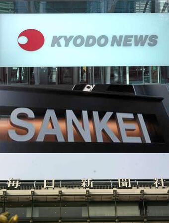 写真上から共同通信、産経新聞、毎日新聞の社屋看板 生成AI(人工知能)検索サービスを提供する米新興企業パープレキシティに記事の著作権を侵害されたなどとして、共同通信社と産経新聞社、毎日新聞社は1日、記事の無断利用の即時停止などを求めて抗議書を送った。3社は「記事に対価を支払わず、『ただ乗り』を繰り返すもので断じて容認できない」などとしている。
