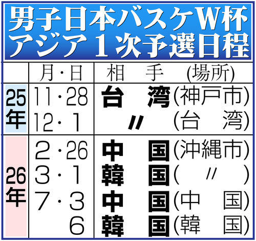【イラスト】男子日本バスケW杯アジア1次予選日程