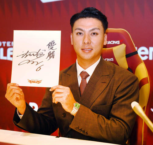 来季の目標は、色紙に力強く「優勝」の2文字を記した。「これが一番の思いです。もうそのままです」ときっぱり。日本シリーズはテレビで眺めていた。