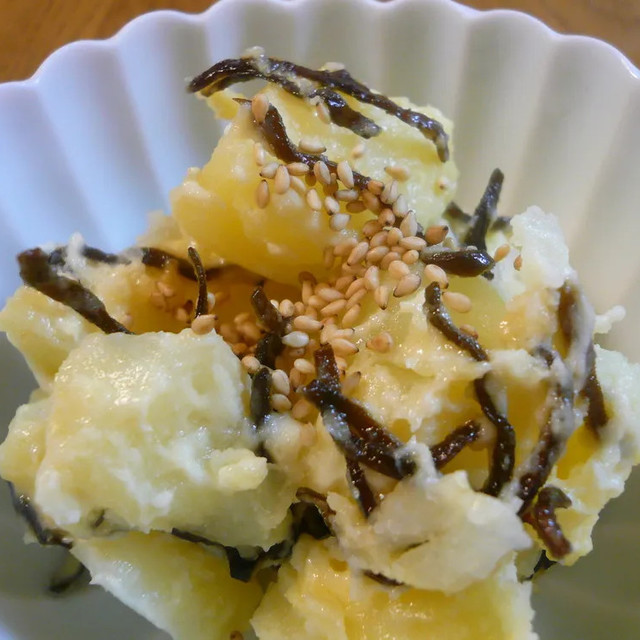 塩昆布の塩気がアクセントに。お酒のおつまみにもぴったりですね。