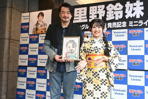 演歌歌手の里野鈴妹(すずめ=24)が2日、ヨドバシカメラ梅田で新曲「島酒場」発売記念の店頭歌唱キャンペーンを実施した。兵庫県立川西明峰高の先輩で元純烈の俳優小田井涼平(54)が応援に駆けつけた。