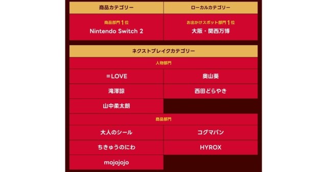商品カテゴリーでは、任天堂が発売した新しいビデオゲーム機「Nintendo Switch 2」が1位にランクイン。急上昇の理由として、既存ソフトとの互換性や新機能への期待が高まり、予約開始日や発売日には、SNSやメディアで大きく取り上げられたことが挙げられるという。