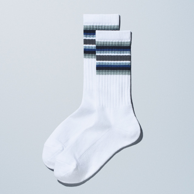 人気の「ラインソックス」からは、冬の新色として、グレーとネイビーを基調に、寒空の下で澄んだ空気のような色合いをイメージした「冬の色」が登場。抗菌防臭加工でニオイにくく、足底はパイル編みの肉厚仕様。サイズは22cm-25cm、25cm-28cmの2種類を展開している。価格は429円。