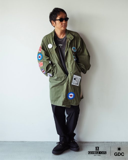 コラボシューズは、ジョージコックスのアイコニックな厚底クレープソールとDリング、アッパーの編み込み仕様が特徴的なブランドを代表するモデル「3588 Gibson(ギブソン)」をベースに採用し、サイドにはGDC が掲げるメッセージ 「A Rolling Stone Gathers NoMoss(転石苔むさず)」を、ホール部分には象徴的な8芒星STAモチーフを配置した。カラーはレッド、ブラック、レオパードの3色展開し、価格は各7万5900円。