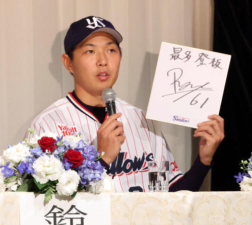 3日、東京・明治記念館での新入団選手発表会に出席。社会人4年目の右腕は「僕の持ち味は力強い真っすぐとスピードのあるスプリット。そこがプロの世界でどれだけ勝負できるか、やれるのか楽しみ。ホールド、セーブと後ろ(で投げる投手)のタイトルは意識してやっていきたい」と力を込めた。