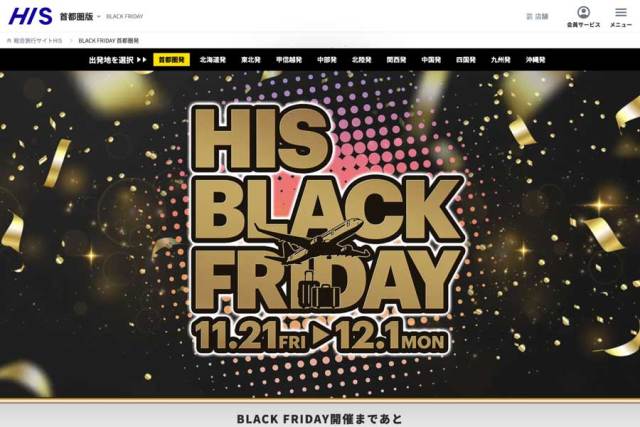 エイチ・アイ・エス(HIS)は、「HIS BLACK FRIDAY」を12月4日まで延長した。