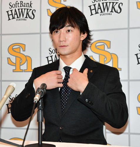契約更改を終えて会見の席につくソフトバンク正木(撮影・岩下翔太)ソフトバンク正木智也外野手(26)は500万円ダウンの年俸2500万円で更改した。今季は開幕メンバー入りし、先発5番で17戦連続出場したが、4月18日の西武戦(ベルーナドーム)の第2打席の空振りの際に左肩を亜脱臼。無念の戦線離脱となった。「ケガは予想外だったし、悔しいシーズンでした」と提示金額を素直に受け入れた。悔しさは来季のモチベーションだ。「来年はこれまでより(レギュラー争いは)厳しい戦いになる。長打力に磨きをかけ突き抜けたい」と力を込めた。