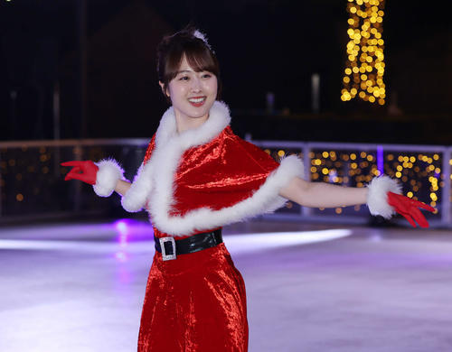 オープニングセレモニーでスケートを披露する本田望結(撮影・増田悦実)女優の本田望結(21)が3日、横浜市の山下公園で行われた「Winter Wonder Park Yokohama 25−26」オープニングセレモニーにサンタの衣装で登場した。