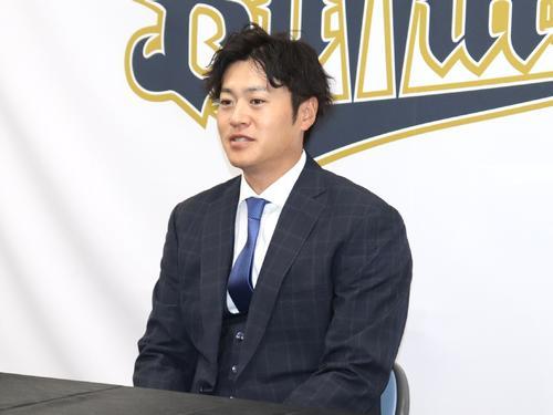 契約更改を終え、会見するオリックス山田(撮影・中島麗)オリックス山田修義投手(34)が4日、大阪・舞洲の球団施設で契約更改交渉に臨み、1100万円減の年俸5500万円でサインした。