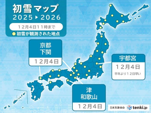 昨日3日から今日4日にかけて初雪ラッシュとなっています。今日4日は宇都宮でも初雪を観測しました。平年より12日早く、昨年より3日早い観測です。