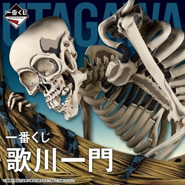 「一番くじ 歌川一門」では、歌川一門の数々の名作を商品化。「一番くじ(BANDAI SPIRITS)」公式X(@ichibanKUJI)にポストされた初報では、浮世絵師・歌川国芳によって描かれた「相馬の古内裏」より、巨大な骸骨のアイテムが紹介されている。