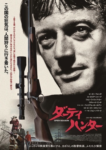解禁されたメインビジュアルでは、動物では飽き足らず、人間を狩るというレジャーを楽しむ倫理観の欠落した男を演じるピーター・フォンダの不気味な表情と、暴力に支配された本作の象徴といえるライフルを中央に大きくフィーチャー。「愛する妻、かけがえのない子どもたち、深い友情で結ばれた仲間…揺るぎない幸せを手に入れた男たちはまた、人知れず狩場へ旅立つ」「この国の狂気は、人間狩りに行き着いた。」というコピーも添えられている。