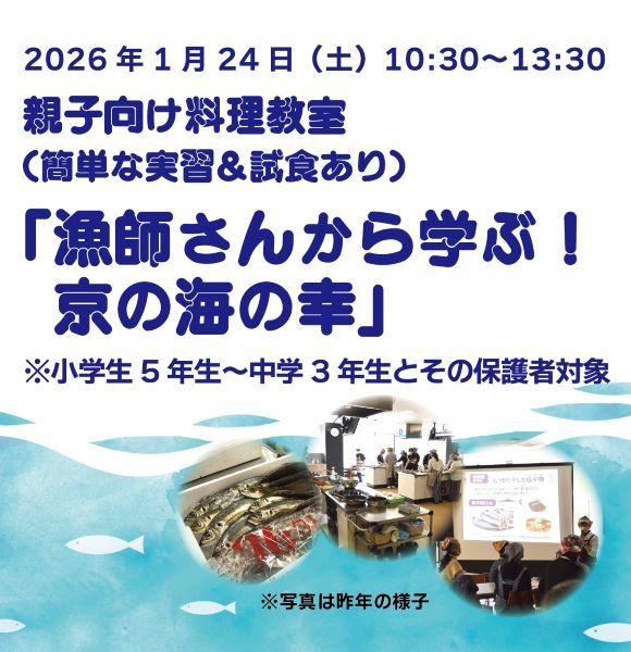 食べることや作ることが好きで、料理教室で新しい一皿を学んでくるのは簡単という人にとっても、生産者と消費者の距離は案外遠い。生産現場の話を聞きながら料理ができるのは貴重な機会。京都市の「京の食文化ミュージアム・あじわい館」で2026年1月24日(土)に、「京の食文化の語り部」と漁業者が小学5年生〜中学3年生とその保護者に京都府の水産物の魅力を伝える教室「漁師さんから学ぶ京の海の幸」が開催される。京都府が主催。開催時間は10時30分〜13時30分。