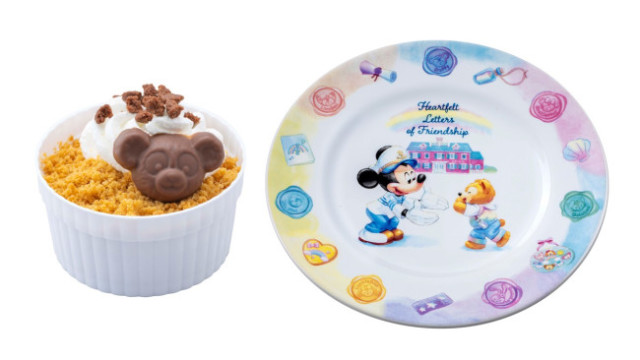 期間中は、ミッキーマウスにダッフィー&フレンズがあふれる思いを伝えている瞬間をデザインした新スーベニアが登場。レストラン「ケープコッド・クックオフ」と「ミゲルズ・エルドラド・キャンティーナ」では、航海から帰ってきたミッキーとダッフィーの再会の様子を描いたスーベニアプレート付きの「キャラメルとチョコのアップルクランブルケーキ」と、ダッフィー&フレンズのワクワク感あふれる表情をあしらったスーベニアカップ付きの「ブルーベリーのミルクプリン&チーズムース」が楽しめる。