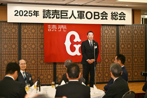 山口寿一オーナー(68)をはじめ、ソフトバンク王貞治球団会長(85)、中畑清OB会長(71)、現役コーチらが集った懇親会ではマイクの前に立った。「OBの皆さま、そしてファンの皆さまに今年は非常に悔しい思いをさせてしまった。その責任はすごく重く感じております」。リーグ3位で終えた今季の受け止めを語り、「いろいろマスコミにたたかれ、時にはイラっとするんですけども、そこをぐっと我慢して、冷静になって。たたいていただけるのが花。『やっぱりジャイアンツが勝ってほしいんだな』、そういう受け止め方を最近はできるようになってきました」と心境を明かした。