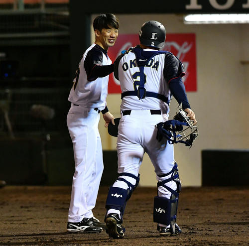 野手の失策もからみピンチが広がり、2者連続で適時打を許して3失点(自責2)。最後は2死二塁から元ソフトバンク真砂勇介さんを三ゴロに抑えた。22球で最速は100キロ。マウンドを降りると、岡田さんと笑顔でハイタッチをかわした。