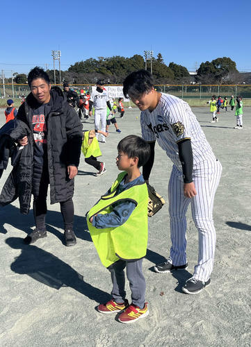 野球教室で子どもたちを教える阪神前川(撮影・磯綾乃)阪神前川右京外野手(22)が佐藤輝明賞の“リベンジ”を期した。地元三重で行われた先輩西勇輝の冠野球大会に出席。「1球1球必死に声出して、チームで戦うというの見て、今自分に足りないのかなと見つけさせていただきました」と刺激を受けた。佐藤輝が挑戦者を募った「佐藤輝明賞」には実は2年連続で参加中。今季は2ケタ本塁打がノルマだったが、達成できず。高級腕時計は手にできなかった。「輝さんからこっそりもらいたい。手首に何もついてないんで」とやる気満々。優勝旅行も返上し、来季こそ2ケタ達成だ。