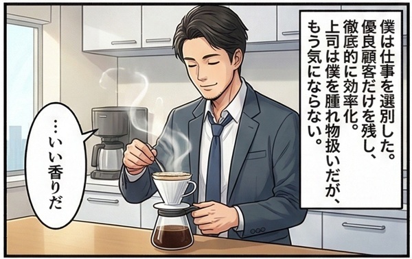 【人気エピソードをマンガ化】今回は、最低限の仕事しかせずに年収800万円。まさに「静かな退職」を上手に実践中の男性のエピソードだ。男性が激務の末に到達した真理とは――。