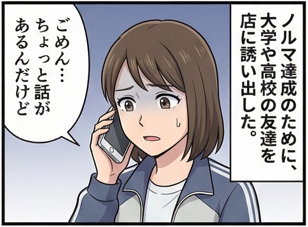 ついには、合コンで出会った男性にも営業をかけて……