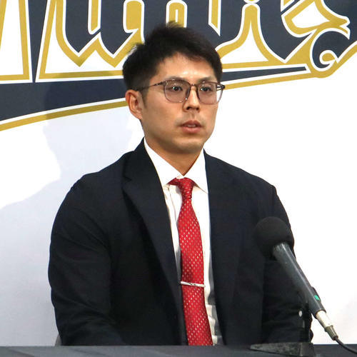 契約更改を終えたオリックス若月(撮影・村松万里子)