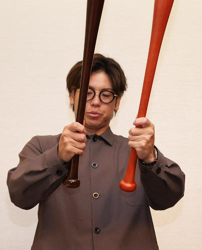 下端にかけて広がりがあり操作性の高いフレア型を用いていたが、今季の中盤から広がりが少ない形を使用。今回は指がかかり速球に対応しやすい、広がりがないストレート型もつくる。1年目などに似た形を使ったことはあるが心機一転の試み。「一番合うものを選びたい。今の型を基準に形を変えて、時には球が速いピッチャーに対応できそうなバットで」。打撃成績向上へシーズン中からさまざまな試行錯誤を続ける。