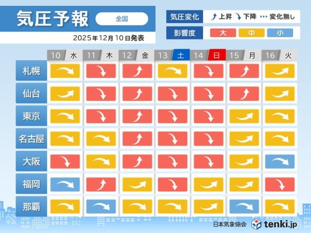 10Æü(¿å)¤ÏË̳¤Æ»¤ä´ØÅ줫¤é²Æì¤Çµ¤°µ¤¬Äã²¼¤¹¤ë¤Ç¤·¤ç¤¦¡£11Æü(ÌÚ)¤âË̳¤Æ»¤«¤é¶áµ¦¡¢²Æì¤Çµ¤°µ¤¬Äã²¼¤·¡¢»¥ËÚ¤«¤éÅìµþ¤Ç±Æ¶Á¤¬Â礤¯¤Ê¤ë¸«¹þ¤ß¤Ç¤¹¡£12Æü(¶â)¤Ï¹¤¯µ¤°µ¤¬¾å¤¬¤ê¤Þ¤¹¤¬¡¢13Æü(ÅÚ)¤«¤é14Æü(Æü)¤Ïµ¤°µ¤¬Äã²¼¤·¡¢±Æ¶Á¤¬Â礤¯¤Ê¤ë½ê¤¬Â¿¤¤¤Ç¤·¤ç¤¦¡£µ¤°µÄã²¼¤Ëȼ¤¦Æ¬ÄË¡¢¼ó¤ä¸ª¤Î¤³¤ê¡¢¤á¤Þ¤¤¡¢Á´¿È·ñÂÕ´¶¡¢´ØÀáÄË¡¢Äã·ì°µ¤Ê¤É¤Ë¤´Ãí°Õ¤¯¤À¤µ¤¤¡£
