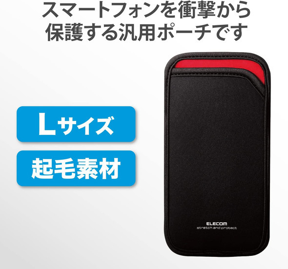 本製品は本体を出し入れしやすいスリップインタイプで、クッション性の高いストレッチ素材や内側には端末を傷つけにくい起毛素材を使用。背面には有線イヤフォンなど小物を収納できるポケットも装備する。