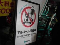 Luupが同日に発表した飲酒運転対策は2つの施策からなる。1つ目は人力による検問だ。Luupのスタッフや警備員がポートに立ち、モビリティーを利用しようとする人に一般的な呼気検査を求め、アルコールが検出されなかった人のみロックを解除する。9日のデモ時点では、検査に通った人にのみ、ロック解除用のQRコードをスマートフォンで読み込んでもらう形を採用していた。