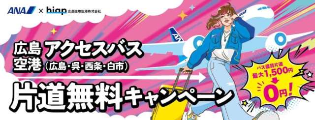 広島国際空港と全日本空輸(ANA)、ANAあきんどは、広島空港アクセスバス片道無料キャンペーンを2026年1月5日から3月31日まで実施する。