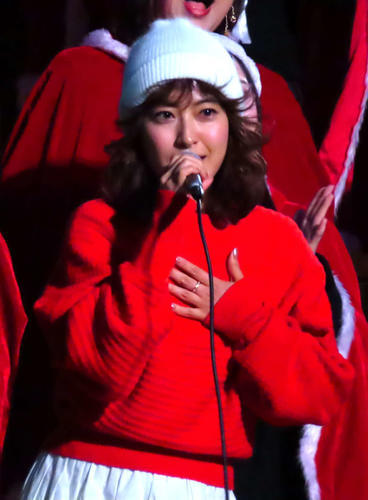 赤いニットのセーターに身を包み、白のニット帽を着用して登場。東京駅で働く人々で結成された「東京エキマチ合唱団」と、「恋人がサンタクロース」「ハピネス」などを歌唱。美しい歌声を響かせ、集まったオーディエンスから大きな拍手を浴びた。
