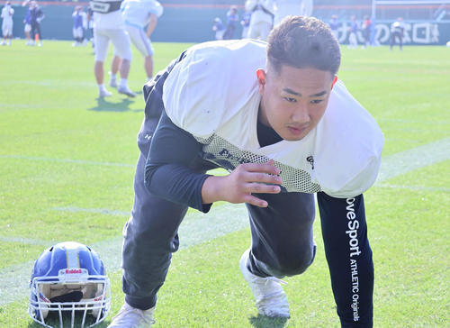 「場所は違えど日本一に…、日本一になります」と熱い思いを秘め、大村和輝監督からも「真面目。言われたことを継続できる」と評される3年生は「まだうまくいったと思った試合はない。(甲子園ボウルでは)貢献して勝ちたい」。現状に満足することなく、決戦へ備える。