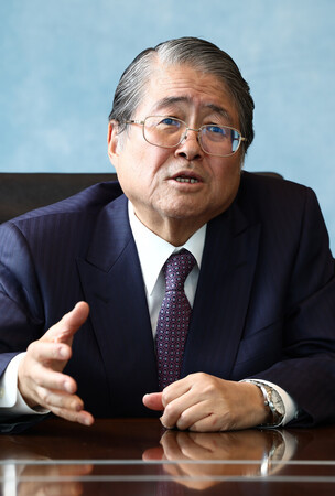 インタビューに答えるフーリハン・ローキーの渡辺章博会長=11月12日、東京都千代田区 米M&A(合併・買収)アドバイザリー大手、フーリハン・ローキー日本法人の渡辺章博会長は11日までに時事通信のインタビューに応じた。非上場化の増加について、自身が取締役会議長として主導した2年前の東芝の非上場化が「ターニングポイントになった」と話した。