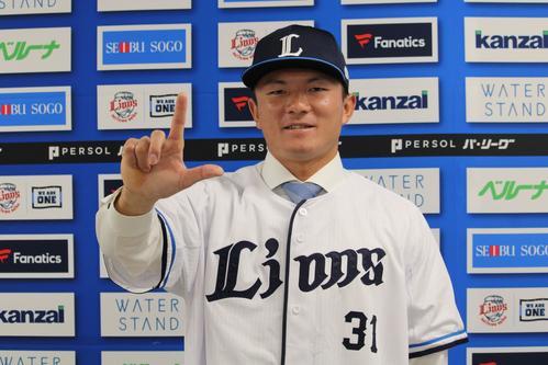 現役ドラフトでの入団会見を行った西武茶野(撮影・金子真仁)現役ドラフトで西武に加入する茶野篤政外野手(26)が12日、埼玉・所沢の球団施設で入団会見を行った。背番号は「31」に決定した。