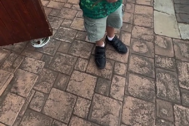 その斬新すぎるママの選択に、息子は思わず立ち止まり、きょとんとしたまま袋を見つめます。驚きと困惑の混ざった絶妙すぎる顔つきに、見ているこちらは思わず笑ってしまいます。