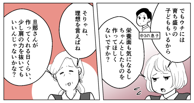 「育ち盛りの息子のために、ちゃんとしたものを食べさせてあげたい」とパート仲間に話すと、パート仲間たちはやや夫の肩を持つような発言をしました。